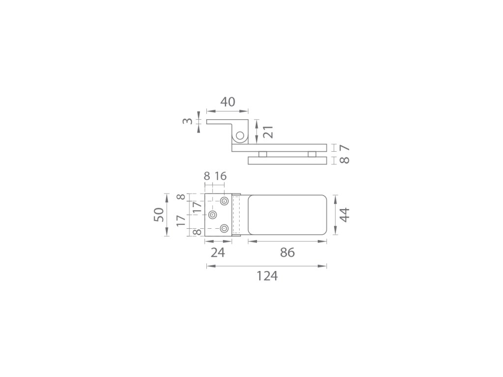 MP - UNIQUE R8 - Pánt na sklo s platničkou horizontálny - pár