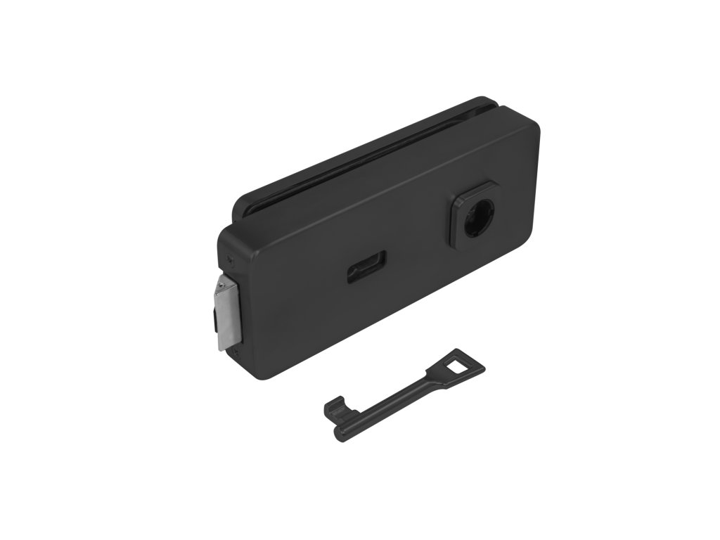 Celokovový zámok na sklenené dvere je vyrobený z materiálu vysokej kvality. Telo zámku je vyrobené zo zliatiny zinku. (zamak) Otvor pre kľučku obsahuje vymedzovací mechanizmus pre maximálne eliminovanie vôle štvorhranu. Mechanizmus zámku umožňuje nastavenie sily pružiny a napomáha udržiavaniu kľučky v horizontálnej polohe. Súčasťou zámku je krytka z hliníka s lakovanou povrchovou úpravou v čiernom prevedení s jedinečným rádiusom R8 pre obyčajný kľúč s označením BB. Vhodný je pre sklenené dvere s hrúbkou 8 – 10 mm. Súčasťou balenia je spojovací materiál.Dodatočné parametre