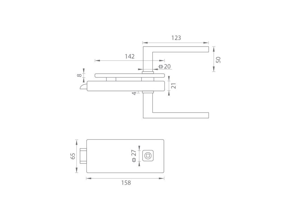 MP - UNIQUE R8 - ZÁMOK na sklo s kľučkou QUADRA - bez otvoru zadný
