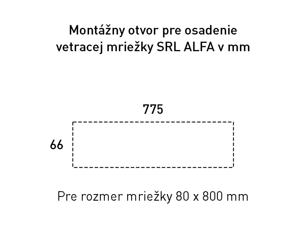 Vetracia mriežka so šírkou 80 mm je vyrobená z hliníka a je povrchovo upravená. VYUŽITIE: na odvetranie vstavaných elektrických spotrebičov v kuchynských linkách, na kryty radiátorov, na vzduchotechniku, do sadrokartónových priečok, do dverí, atď. MONTÁŽ: dĺžka montážneho otvoru je o 25 mm kratšia ako je celková dĺžka mriežky (t. z. 12,5 mm z každej strany), šírka montážneho otvoru je o 14 mm užšia ako je celková šírka mriežky (t. z. 7 mm z každej strany).Dodatočné parametre