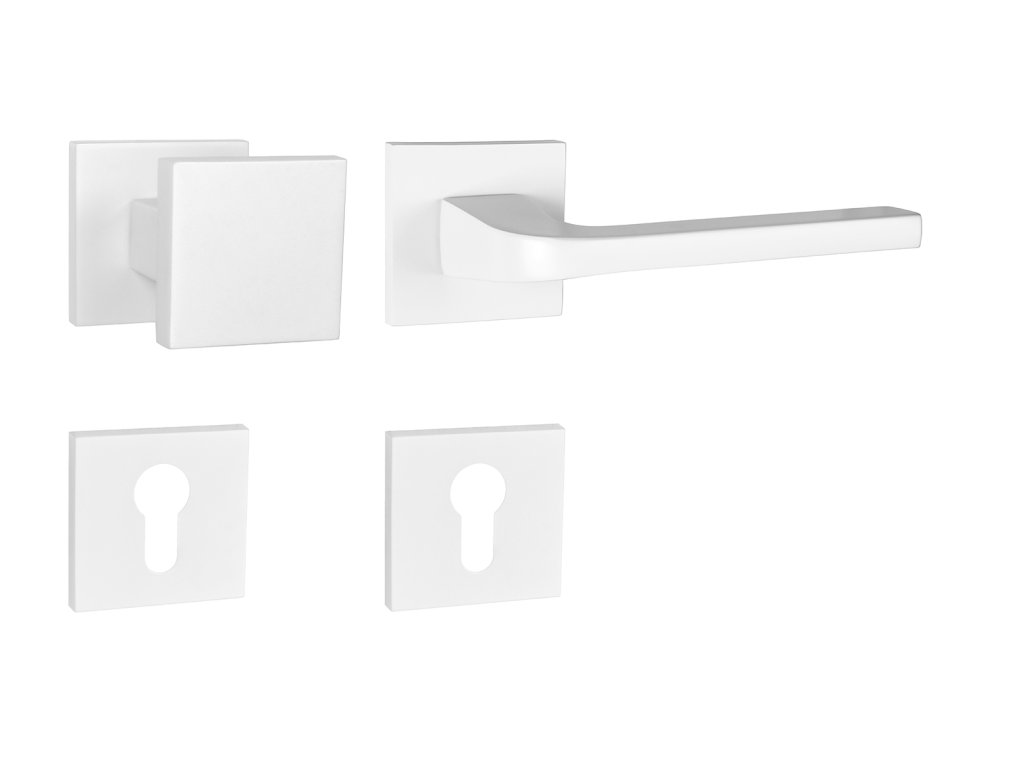 Rozetová kľučka VIVA na interiérové dvere s hranatou rozetou je vyrobená z materiálov vysokej kvality- zamak (zliatina zinku) a je povrchovo upravená