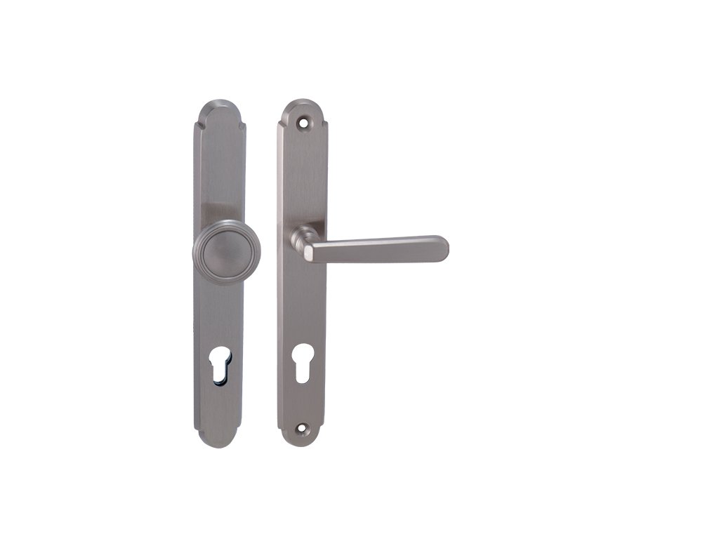 Štítová kľučka na vchodové a bezpečnostné dvere so spevneným rustikálnym štítom bez prekrytia cylindrickej vložky je vyrobená z materiálov vysokej kvality – mosadz a je povrchovo upravená. Rustikálny štít má rozmery 38 mm x 280 mm a hrúbku 11 mm. Kovanie neobsahuje pružinovú mechaniku a nie je vhodné do exteriéru prípadne do prostredia so zvýšenou vlhkosťou. Je to len na Vašom rozhodnutí, akú rozteč a aké prevedenie si vyberiete z našej širokej ponuky. V prípade, že sa neviete rozhodnúť, radi Vám poradíme a pomôžeme s výberom. Upozornenie: Pri spevnenom kovaní je potrebné poznať vzdialenosť medzi osou kľučky a osou kľúča (rozteč). Štandardná vzdialenosť je 72, 90 alebo 92 mm. Kovanie s roztečou 72 a 90 mm je štandardom pre hrúbku dverí od 38 mm do 50 mm. Kovanie s roztečou 92 mm je štandardom pre hrúbku dverí od 68 mm do 78 mm.Dodatočné parametre