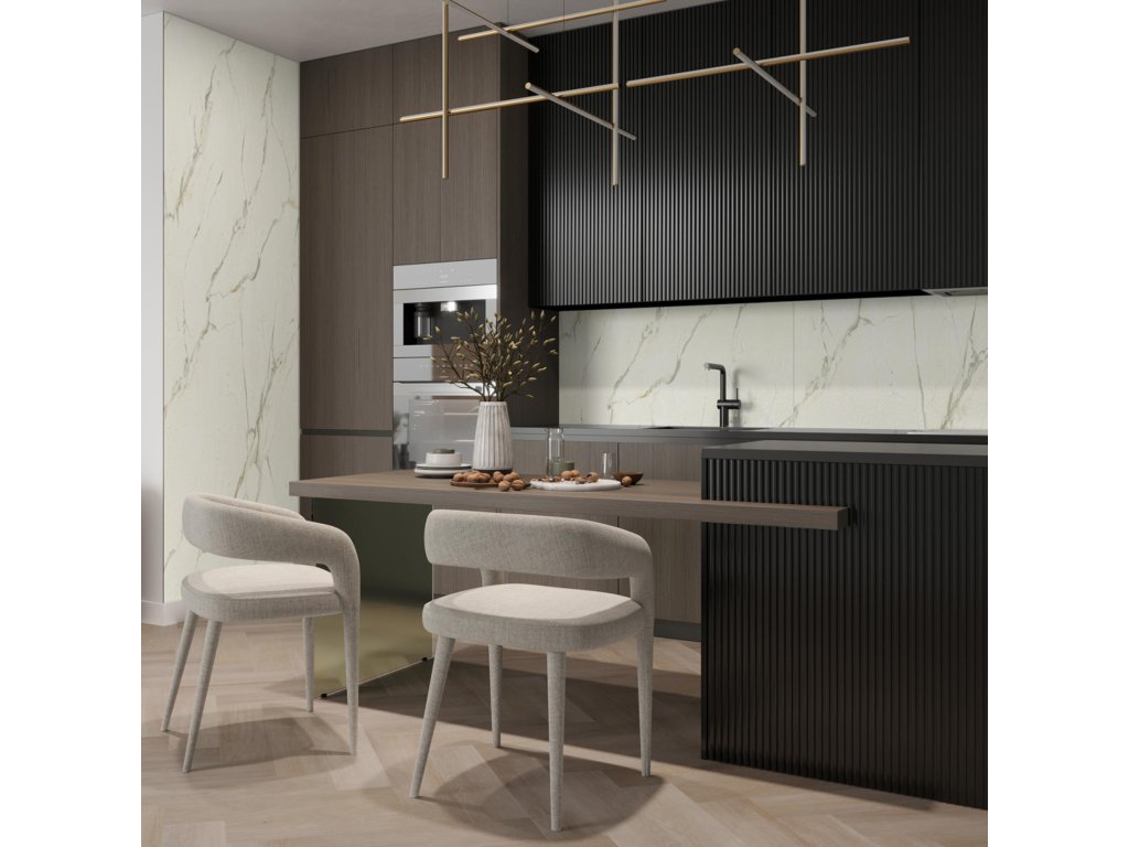 Kolekcia Stone Essence – Slabs prináša eleganciu prírodného kameňa vo veľkoformátovom riešení 1175 × 2800 mm, ktorý dodá každému priestoru majestátny a nadčasový výraz. Panely s hrúbkou len 4 mm sú napriek svojmu robustnému vzhľadu ľahké a flexibilné.