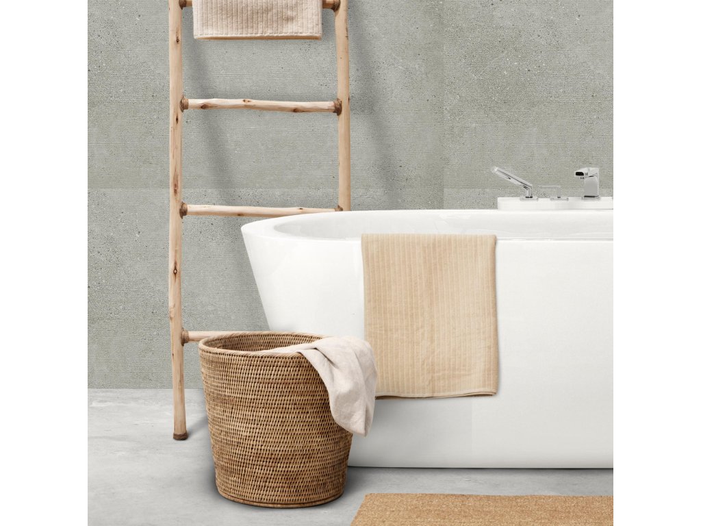 Kolekcia Raw concrete – Tiles ponúka obkladové panely s betónovou kresbou vo formáte 1200 × 600 mm, ktorý je vhodný najmä do menších miestností alebo na vytvorenie moderných detailov. Tenké 4 mm panely sa jednoducho režu a tvarujú, vďaka čomu sa prispôsobia aj členitejším stenám.