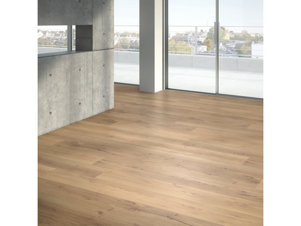 Špeciálna nosná doska podláh Parador Modular ONE so zvýšenou ochranou proti napučaniu zaisťuje jej odolnosť voči vode, a preto je vhodná aj na montáž vo vlhkých miestnostiach ako sú kuchyne a kúpeľne.