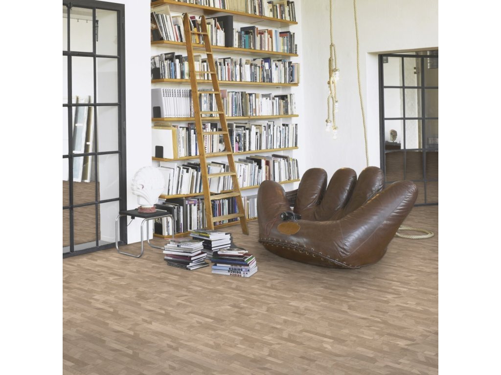 Parador Modular ONE Cross Cut je moderná kompozitná podlaha z kolekcie Iconics, ktorá spája mestský dizajn, technickú precíznosť a maximálny komfort pri každodennom používaní. Povrch s jemnou modulárnou štruktúrou pórov a autentickým „Cross Cut“ vzorom pôsobí prirodzene a elegantne, pričom verne imituje vzhľad skutočného materiálu – dreva či betónu.
