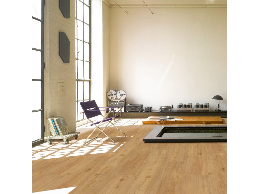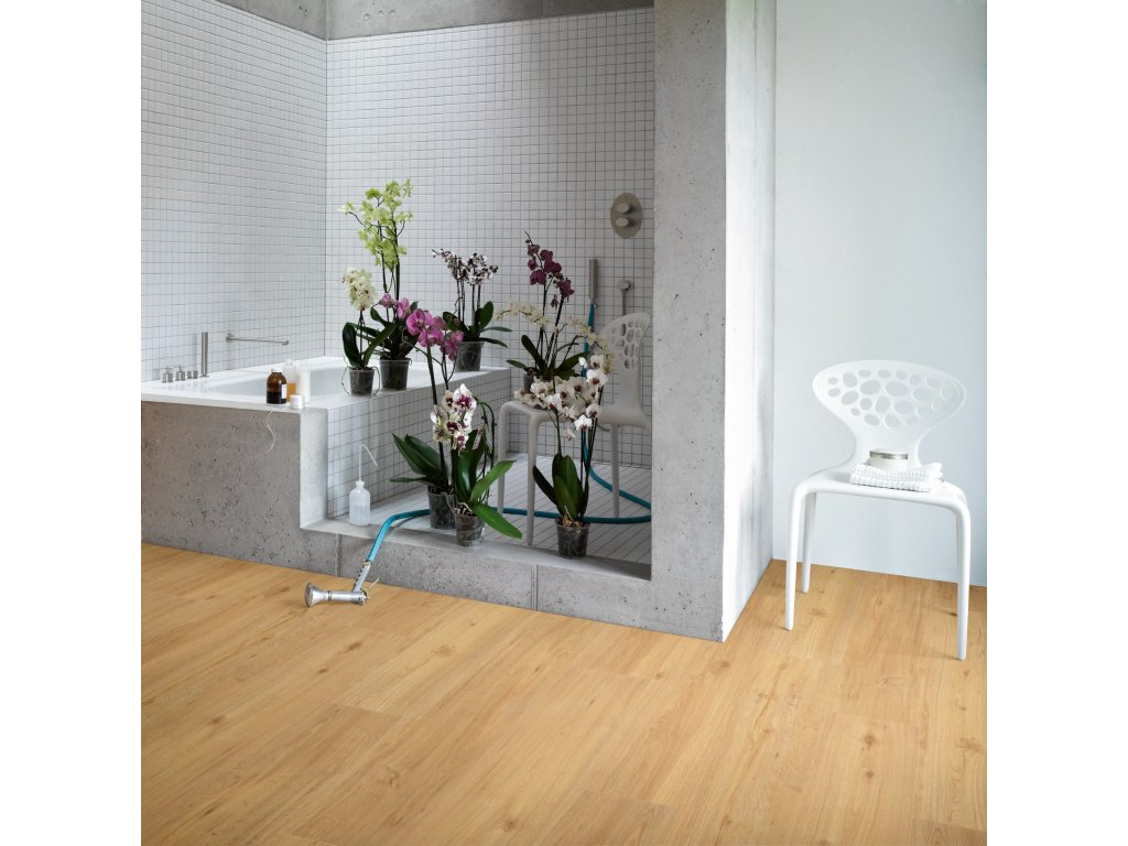 Svojím zložením patrí podlaha medzi kvalitné a odolné podlahy, ktoré sú aj na slnečných miestach farebne a rozmerovo stále.
