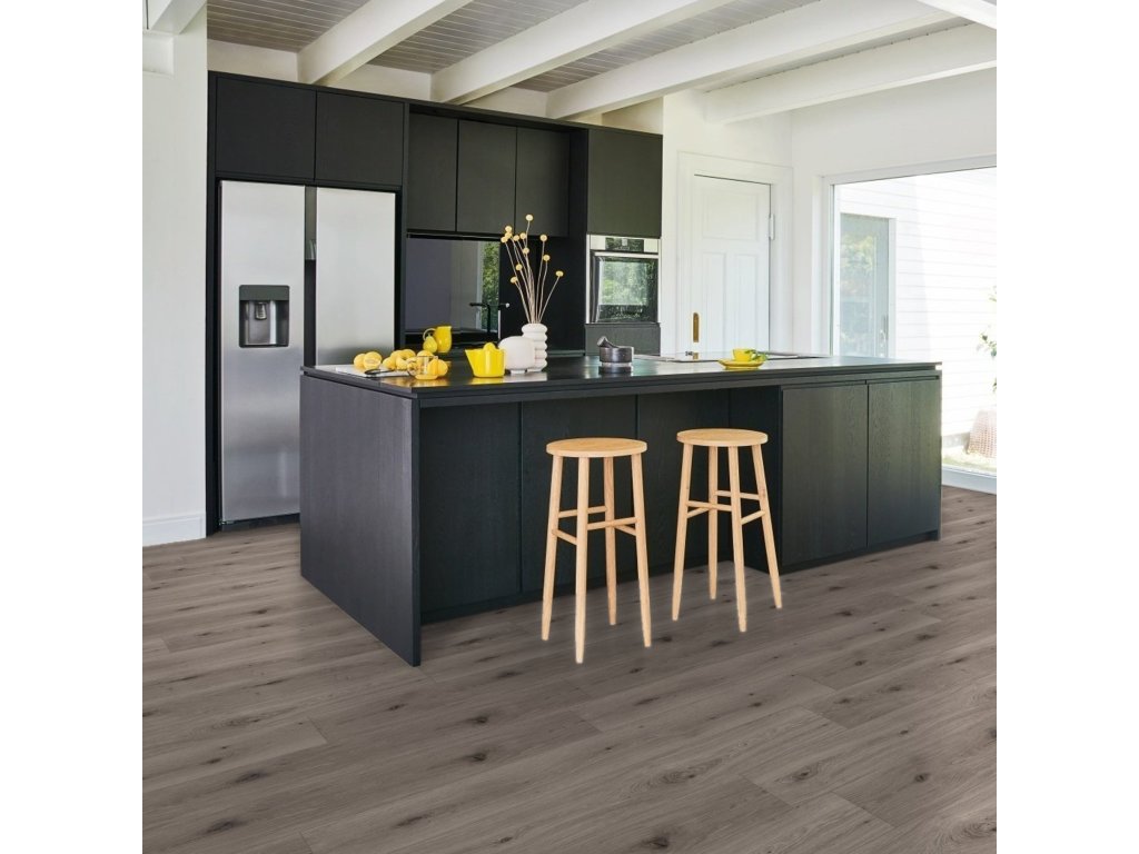 Povrch s realistickou drevenou štruktúrou prináša autentický prírodný vzhľad, ktorý zaujme na prvý pohľad a zároveň odoláva poškriabaniu, fľakom a oderu. Veľké lamely dodávajú priestoru vzdušnosť a moderný štýl.