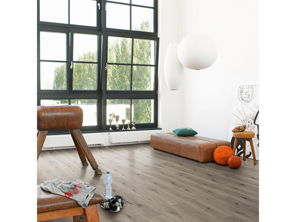 Integrovaná akustická podložka zlepšuje komfort pri chôdzi a výrazne tlmí kročajový hluk. Podlaha je vhodná na použitie s podlahovým kúrením a jej pokládka je vďaka click systému rýchla a presná.