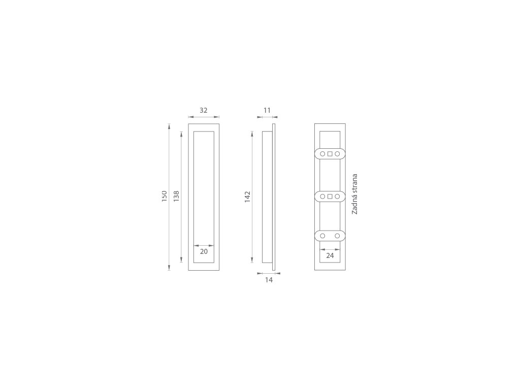 Hranatá mušľa bez otvoru je vyrobená z materiálov vysokej kvality – zamak a je povrchovo upravená. Mušľa má výšku 150 mm, šírku 32 mm, zádlab 11 mm a celkovú hrúbku 17,5 mm. Upevnenie skrutkou - Súčasťou balenia je sada skrutiek na preskrutkovanie cez dvere. Cena je uvedená za pár.Dodatočné parametre