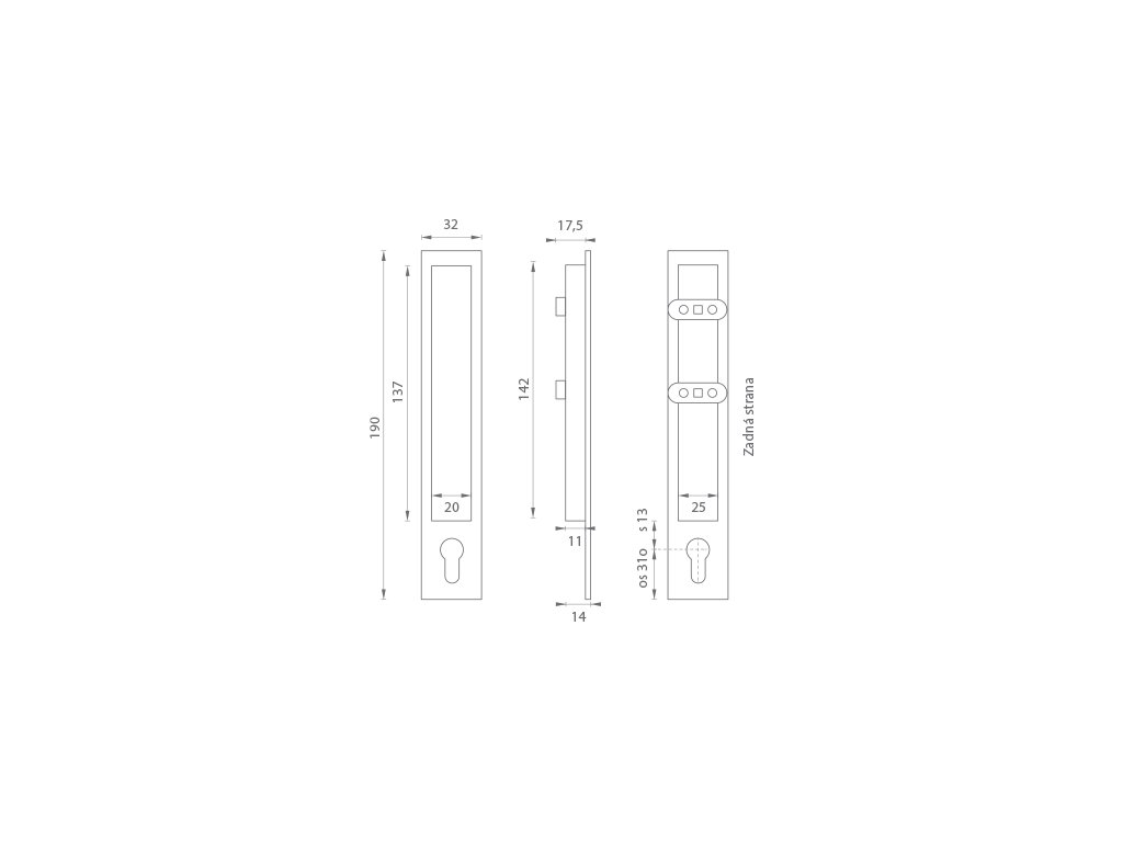 Hranatá mušľa s otvorom pre cylindrickú vložku (PZ) je vyrobená z materiálov vysokej kvality – zamak a je povrchovo upravená. Mušľa má výšku 190 mm, šírku 32 mm, zádlab 11 mm a celkovú hrúbku 17,5 mm. Upevnenie skrutkou - Súčasťou balenia je sada skrutiek na preskrutkovanie cez dvere. Cena je uvedená za pár.Dodatočné parametre