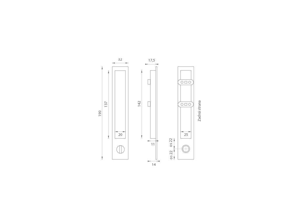 Hranatá mušľa s WC kľúčom je vyrobená z materiálov vysokej kvality – zamak a je povrchovo upravená. Mušľa má výšku 190 mm, šírku 32 mm, zádlab 11 mm a celkovú hrúbku 17,5 mm. Upevnenie skrutkou - Súčasťou balenia je sada skrutiek na preskrutkovanie cez dvere. Cena je uvedená za set.Dodatočné parametre