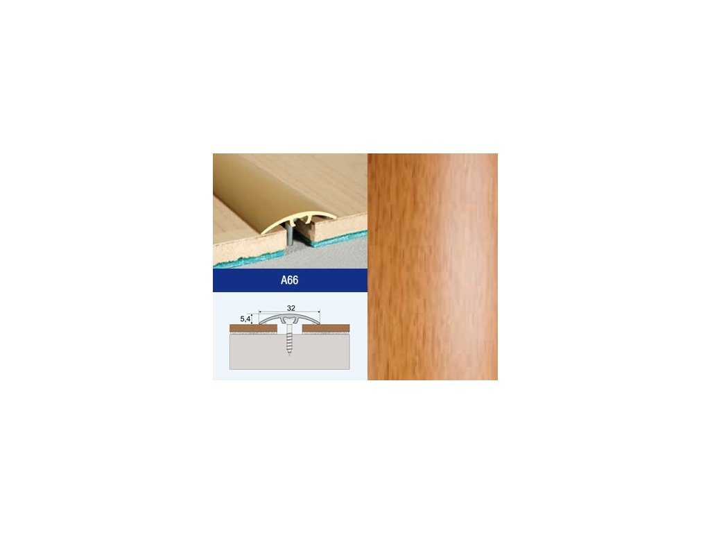 Prechodový profil EFFECTOR A66 je narážací hliníkový profil určený na pevné a estetické spojenie dvoch podlahových krytín. Tento typ profilu zakrýva dilatačnú škáru medzi podlahami a zároveň vytvára čistý a bezpečný prechod bez viditeľných spojovacích prvkov na povrchu.