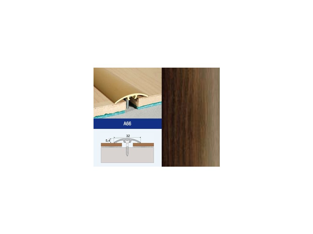 Prechodový profil EFFECTOR A66 je narážací hliníkový profil určený na pevné a estetické spojenie dvoch podlahových krytín. Tento typ profilu zakrýva dilatačnú škáru medzi podlahami a zároveň vytvára čistý a bezpečný prechod bez viditeľných spojovacích prvkov na povrchu.