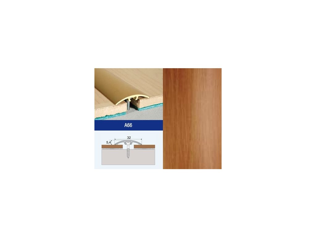Prechodový profil EFFECTOR A66 je narážací hliníkový profil určený na pevné a estetické spojenie dvoch podlahových krytín. Tento typ profilu zakrýva dilatačnú škáru medzi podlahami a zároveň vytvára čistý a bezpečný prechod bez viditeľných spojovacích prvkov na povrchu.