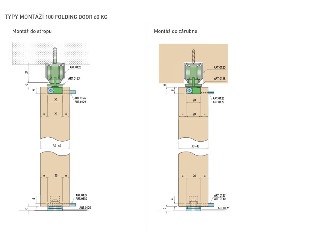 SC – systém SERIES 100 FOLDING DOOR pre zalamovacie dvere 2000/60 30 mm obsahuje: