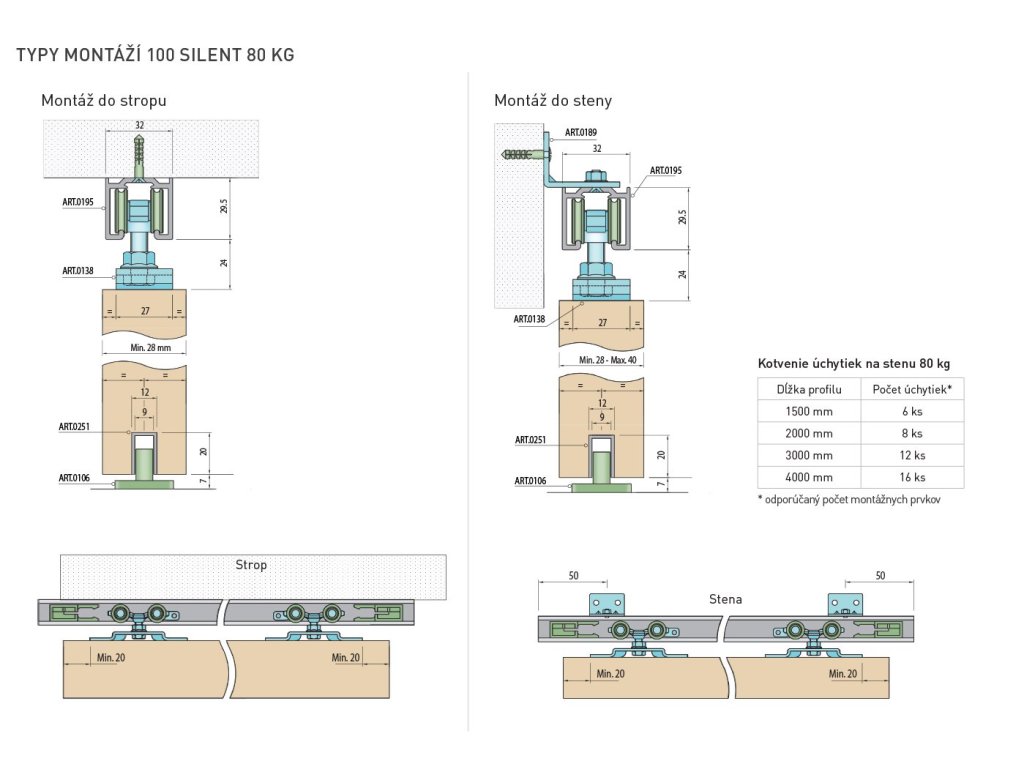 SC - POSUVNÝ SYSTÉM 100 SILENT 80 KG s obojstranným krytom na profil