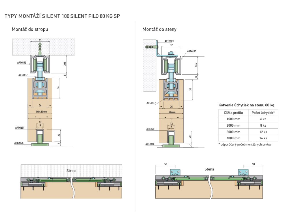 SC - POSUVNÝ SYSTÉM 100 SILENT FILO S 80 KG SP