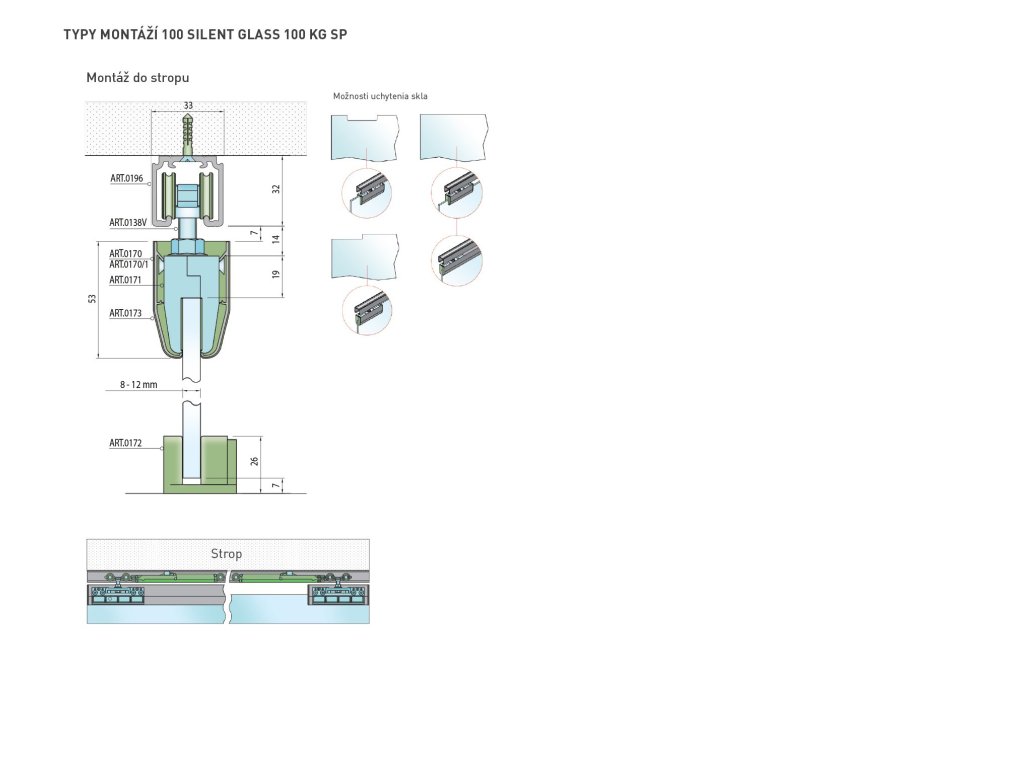 SC - POSUVNÝ SYSTÉM 100 SILENT GLASS S 100 KG SP s krytom na profil