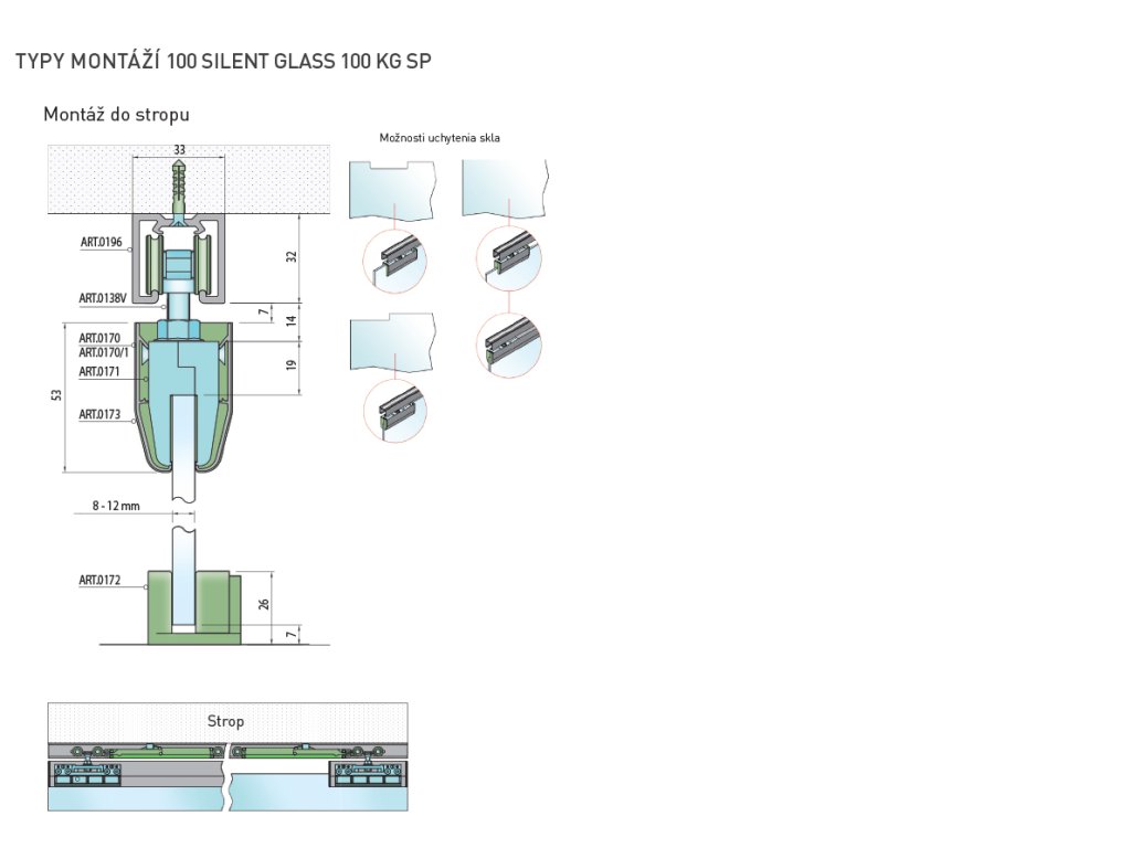 SC - POSUVNÝ SYSTÉM 100 SILENT GLASS S 100 KG SP s obojstranným krytom na profil