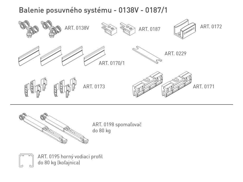 SC – posuvný systém SERIES 100 SILENT GLASS S pre jednokrídlové dvere 1D 2000/80 SP obsahuje: