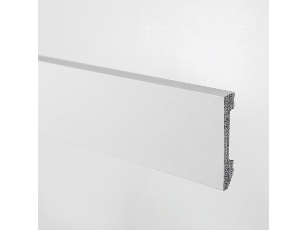 Elegantná soklová lišta s jednoduchým obdĺžnikovým profilom je vyrobená z extrudovaného polystyrénu s vysokou hustotou, vďaka čomu je pevná, ľahká a odolná.