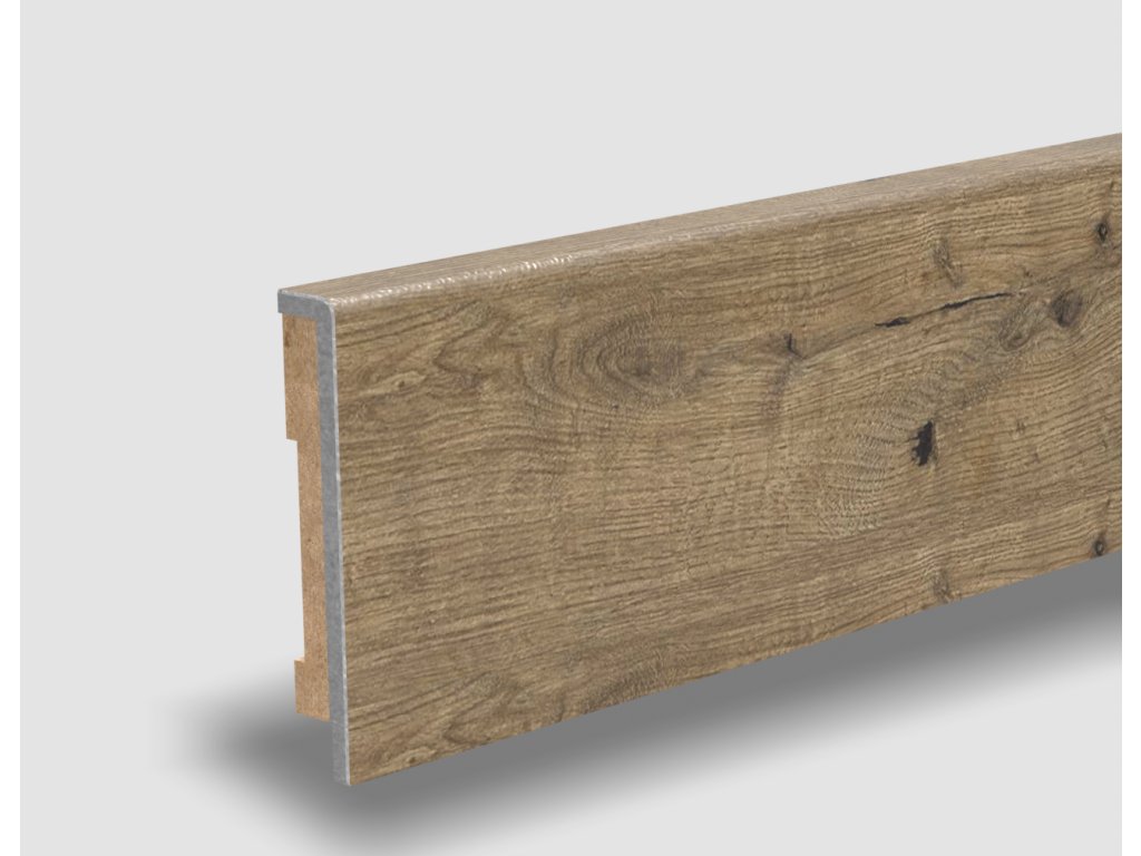 Štandardné soklové lišty Floorify s odolným HDF jadrom a rigídnym vinylovým povrchom, ktorý zabezpečuje vysokú odolnosť proti oderu a vlhkosti.