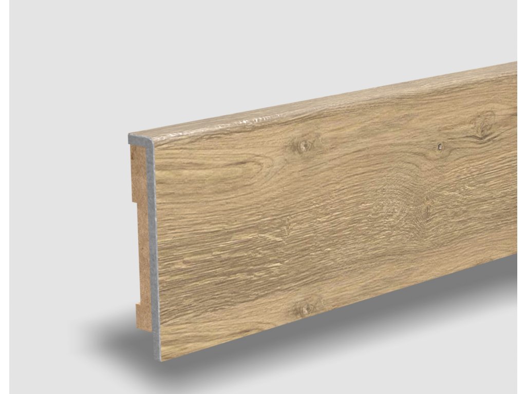 Štandardné soklové lišty Floorify s odolným HDF jadrom a rigídnym vinylovým povrchom, ktorý zabezpečuje vysokú odolnosť proti oderu a vlhkosti.