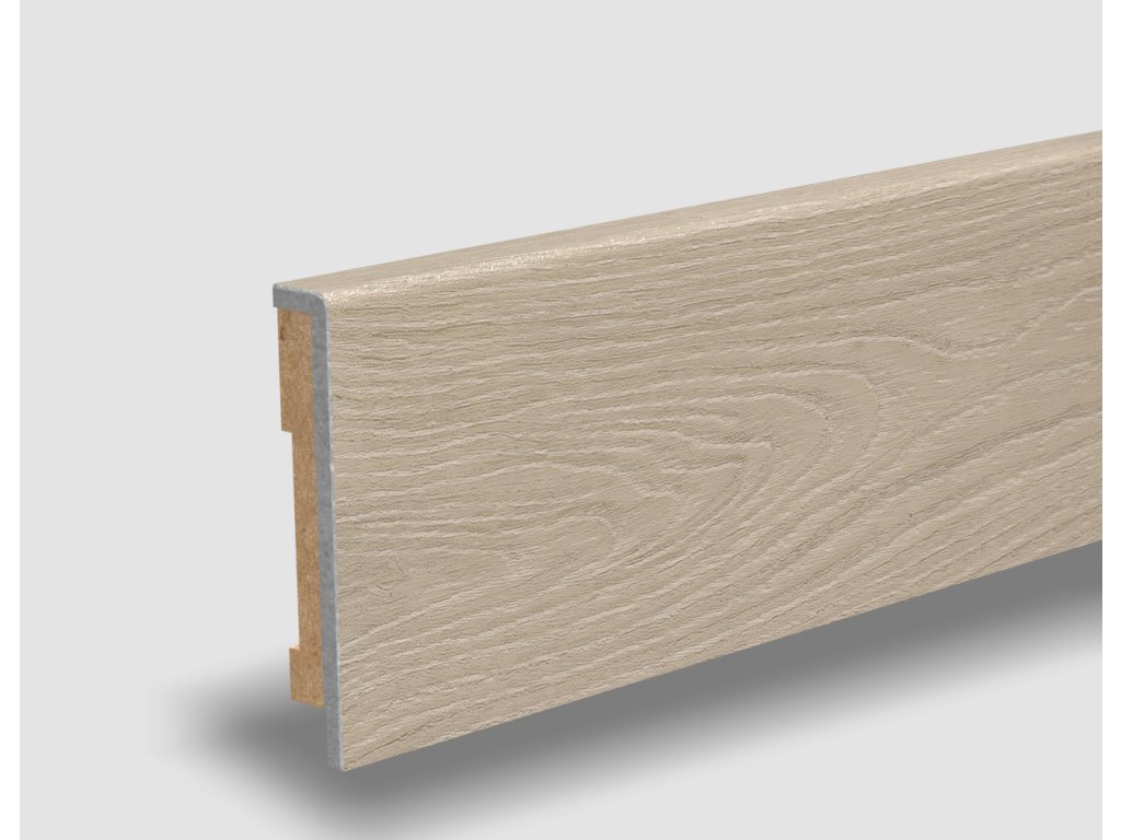 Štandardné soklové lišty Floorify s odolným HDF jadrom a rigídnym vinylovým povrchom, ktorý zabezpečuje vysokú odolnosť proti oderu a vlhkosti.