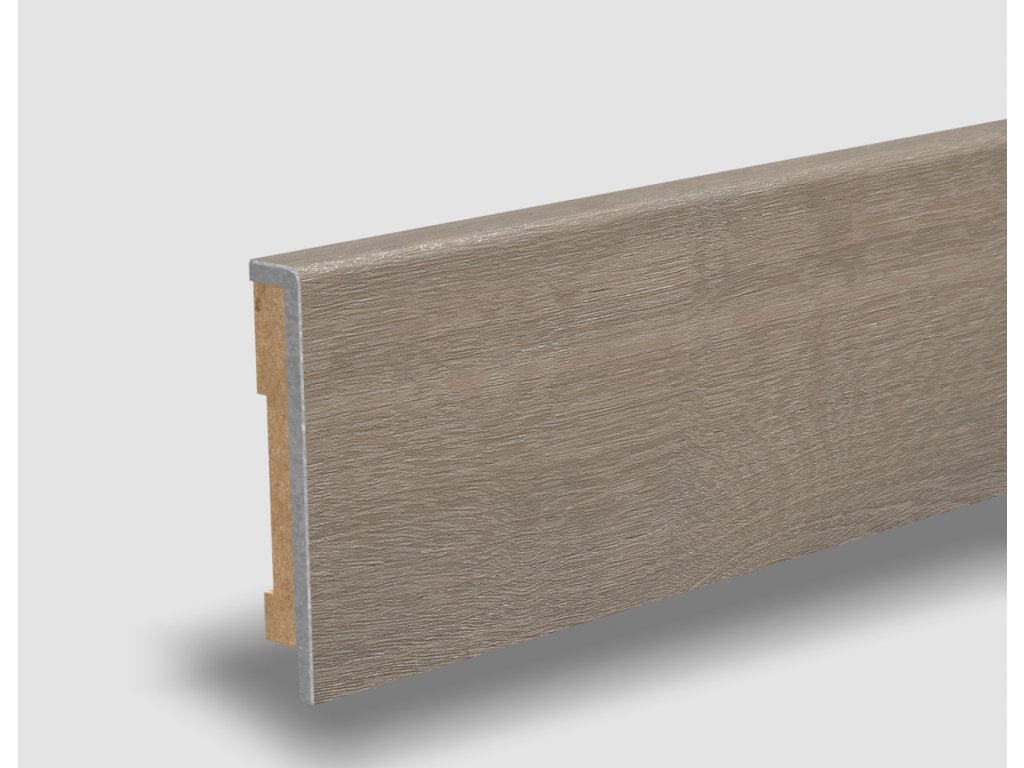 Štandardné soklové lišty Floorify s odolným HDF jadrom a rigídnym vinylovým povrchom, ktorý zabezpečuje vysokú odolnosť proti oderu a vlhkosti.