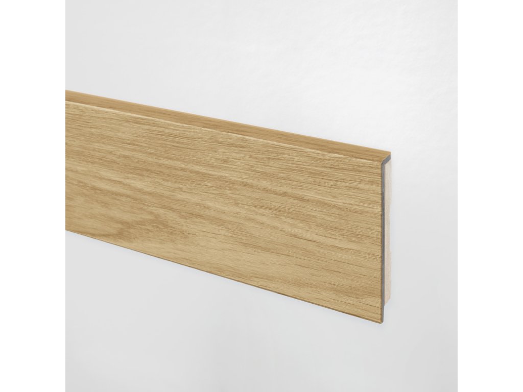 Vysoké soklové lišty Floorify majú pevné HDF jadro a rigídny vinylový povrch, ktorý zaručuje odolnosť proti mechanickému poškodeniu a vlhkosti.