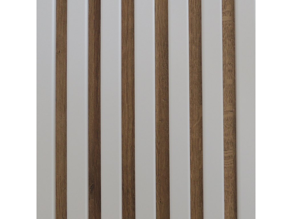 LAMELY NA MDF DOSKE - 7KS LAMIEL - ROZMER 2650 X 300 mm - farba lamiel Biela + farba MDF dosky Dub európsky