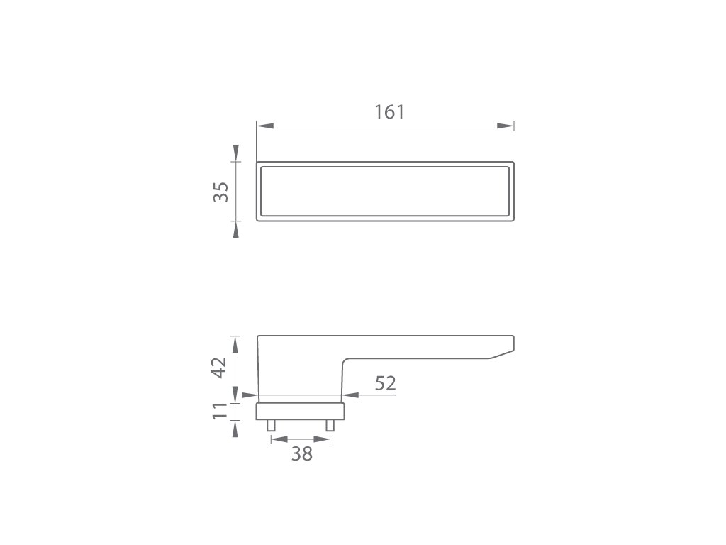 Rozetová kľučka na interiérové dvere s obĺžnikovou rozetou je vyrobená z materiálov vysokej kvality-zamak a je povrchovo upravenáRozeta má rozmer 52 x 33 mm a hrúbku len 7 mm