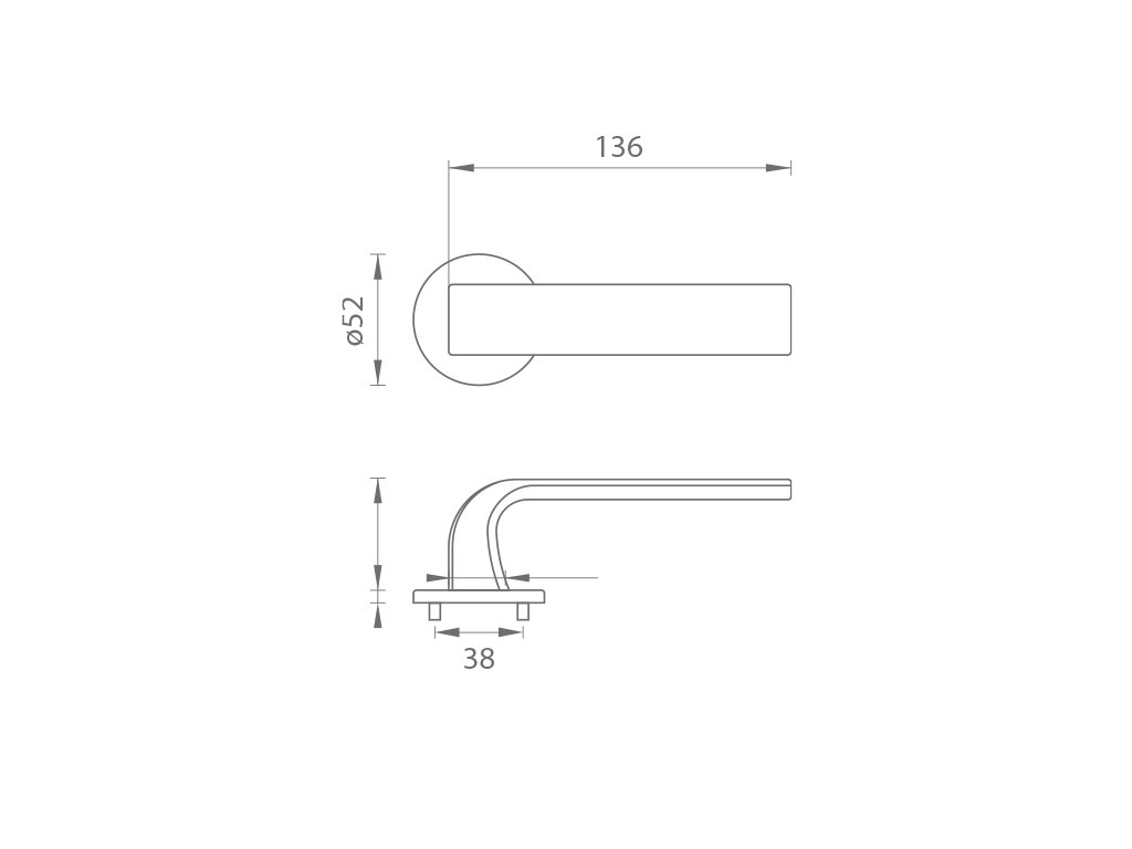 Rozetová kľučka na interiérové dvere s okrúhlou rozetou rozetou je vyrobená z materiálov vysokej kvality - zamak a je povrchovo upravená.Rozeta má priemer 52 mm a hrúbku len 5 mm.