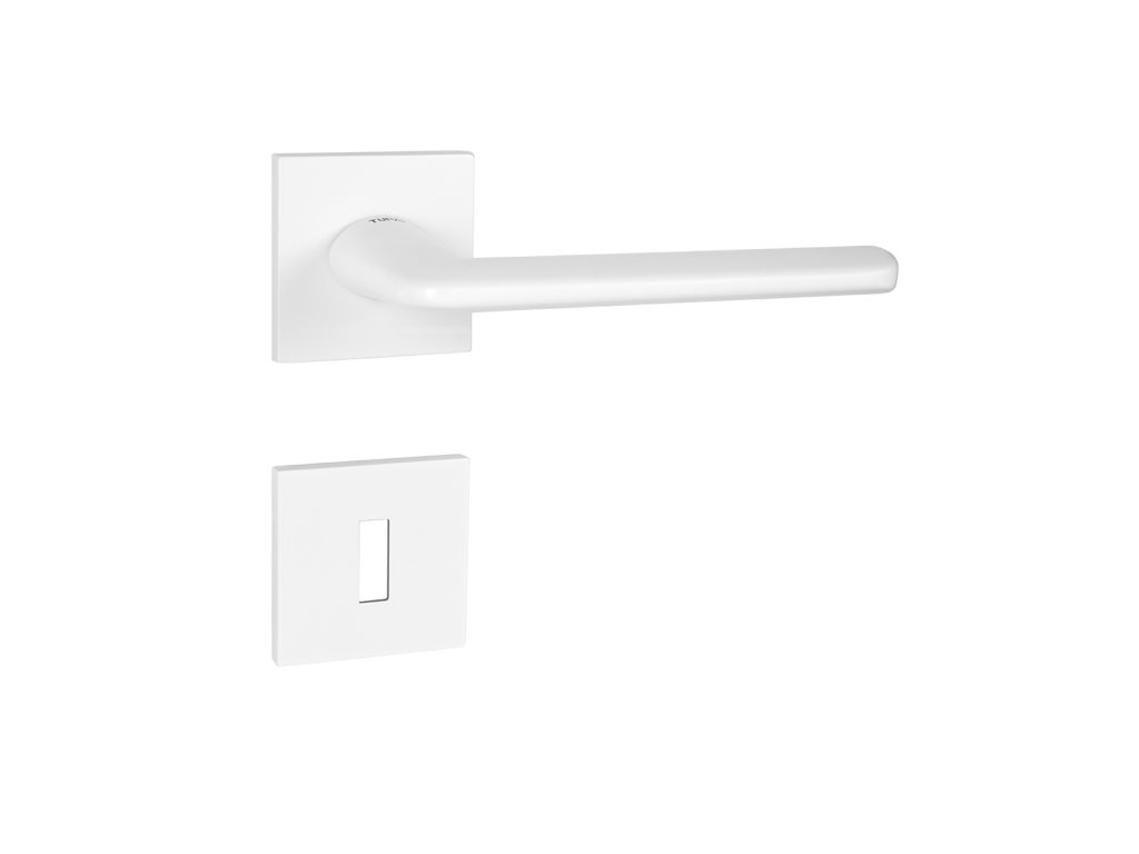 Rozetová kľučka na interiérové dvere s hranatou rozetou je vyrobená z materiálov vysokej kvality- zamak a je povrchovo upravená
