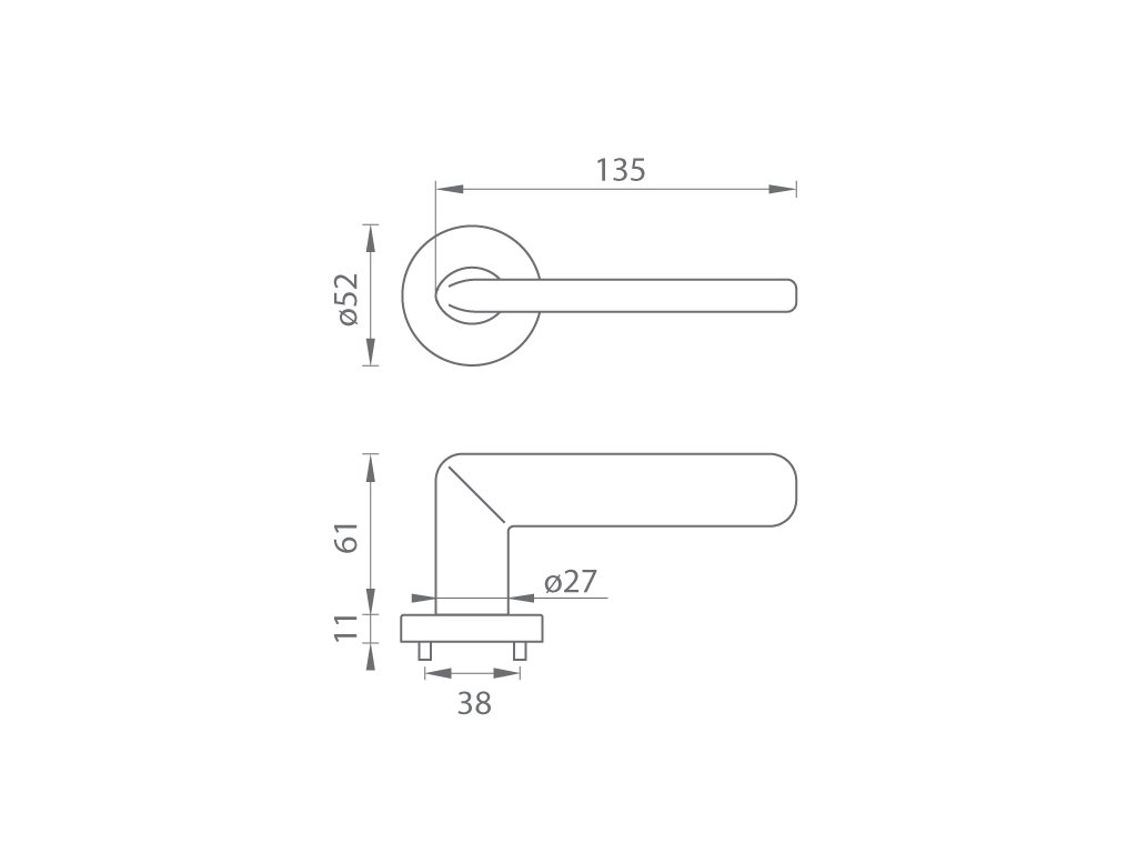 Rozetová kľučka na interiérové dvere s okrúhlou rozetou je vyrobená z materiálov vysokej kvality - zamak a je povrchovo upravená.Rozeta má priemer 52 mm a hrúbku len 5 mm.