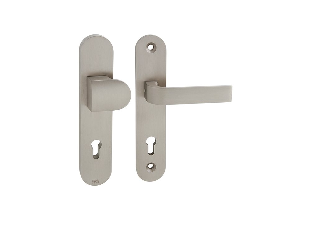 Štítová kľučka na vchodové a bezpečnostné dvere s bezpečnostným oválnym štítom bez prekrytia cylindrickej vložky je vyrobená z materiálov vysokej kvality – zamak a je povrchovo upravená.