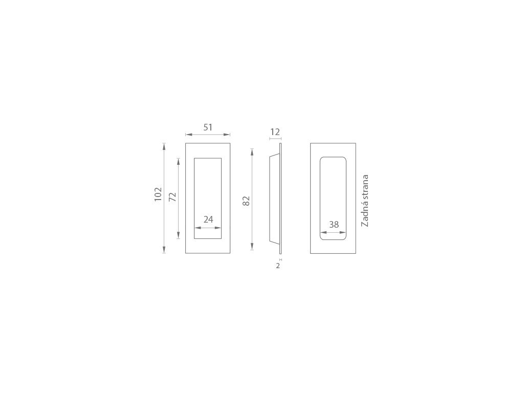 Hranatá mušľa na posuvné dvere je vyrobená z vysokokvalitnej nehrdzavejúcej ocele (nerez) a je povrchovo upravená striekaním. Mušľa má výšku 101 mm, šírku 51 mm, hĺbku 10 mm a celkovú hrúbku 12 mm. Montáž mušle je lepením a upevnením dvoma skrutkami. Cena je uvedená za KUS.Dodatočné parametre