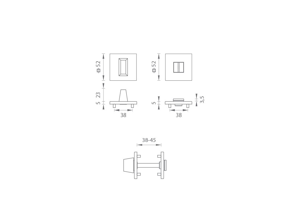 Hranatá rozeta je vyrobená z materiálov vysokej kvality - mosadz a je povrchovo upravená. Rozeta má rozmery 52 mm x 52 mm, hrúbku len 5 mm a hranatý otvor pre interiérový klúč (BBQ), otvor pre cylindrickú vložku (PZ) alebo WC set s vmontovaným kľúčom. Balenie obsahuje 2 kusy roziet (pár) a rozety WC sú v balení ako set. Rozeta obsahuje patentovanú TUPAI mechaniku s nylonovo-kovovou podložkou s výstupkami - klikmi, ktorá uľahčuje montáž krytky rozety a zabezpečuje stabilné upevnenie bez možnosti samovoľného pohybu krytky.Dodatočné parametre