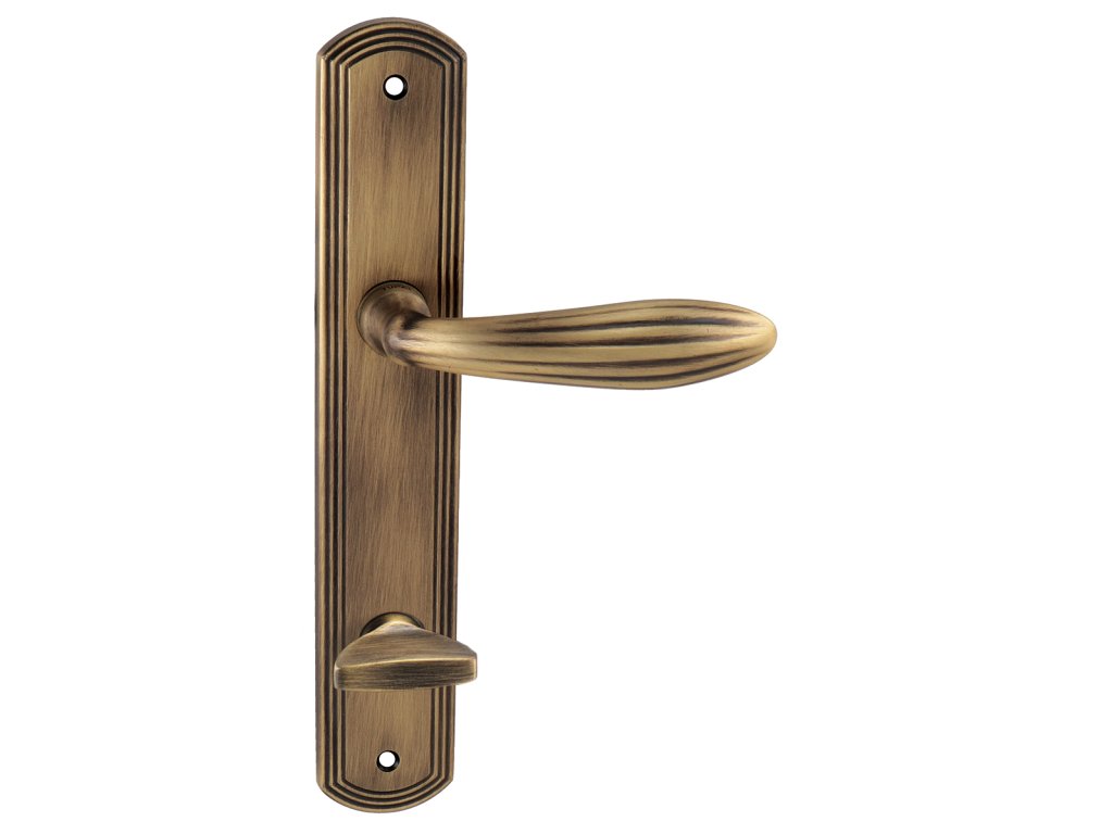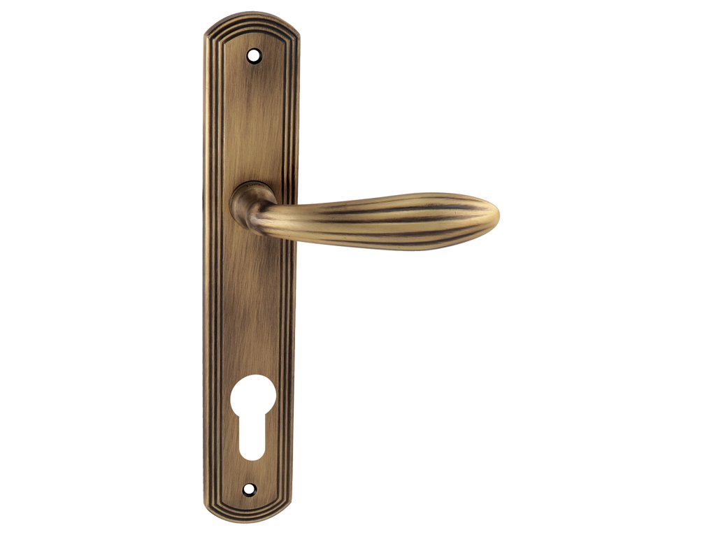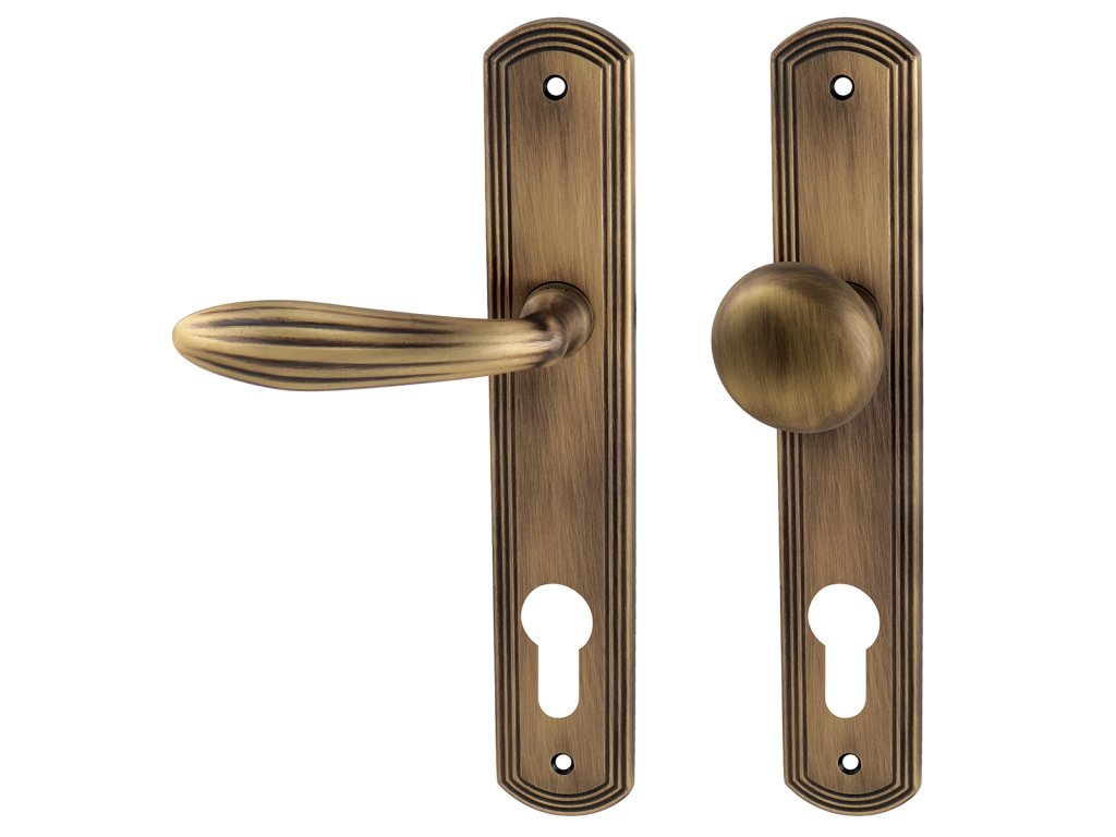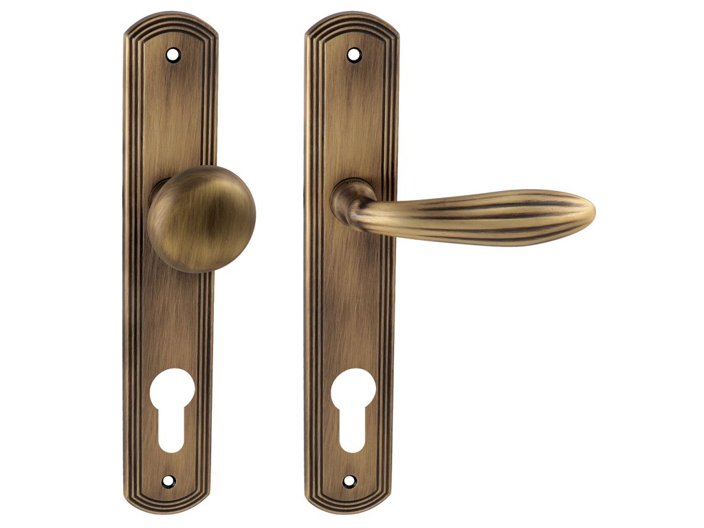 Štítová kľučka na interiérové dvere s rustikálnym štítom je vyrobená z materiálov vysokej kvality – mosadz a je povrchovo upravená.