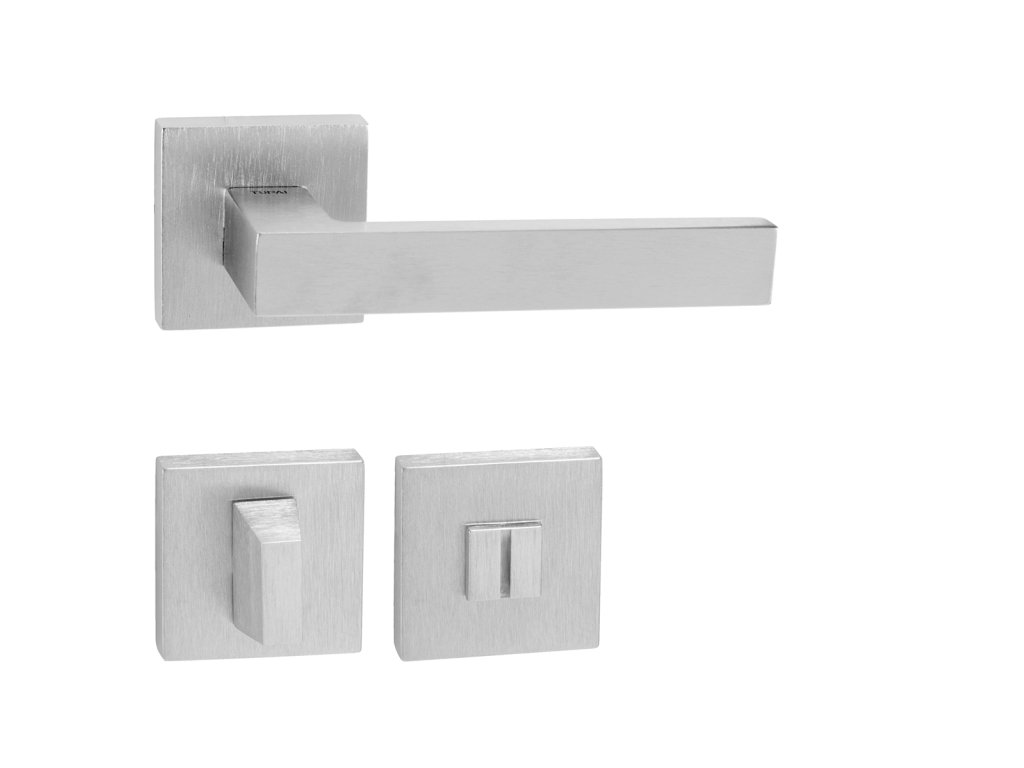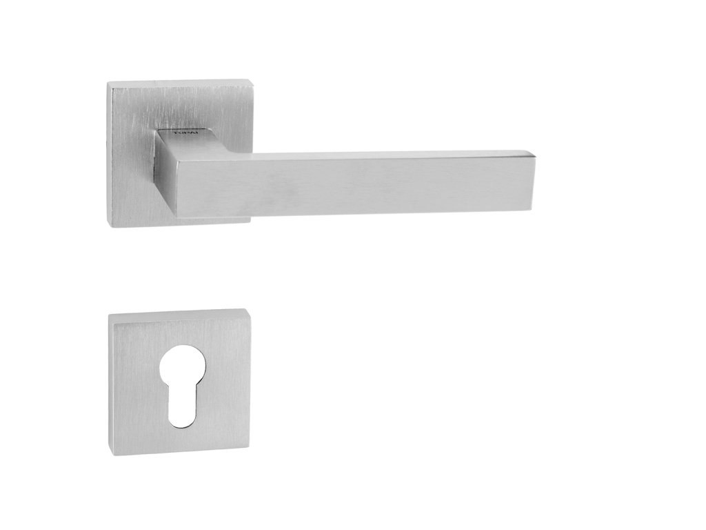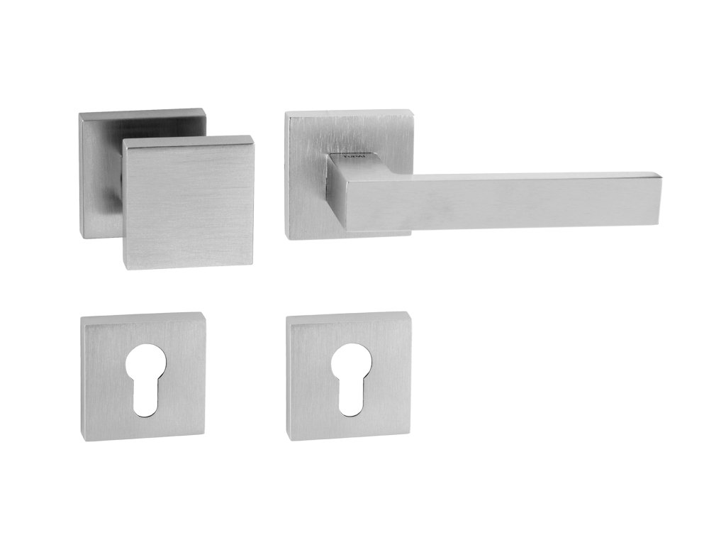 Rozetová kľučka na interiérové dvere s hranatou rozetou je vyrobená z materiálov vysokej kvality- zamak a je povrchovo upravená