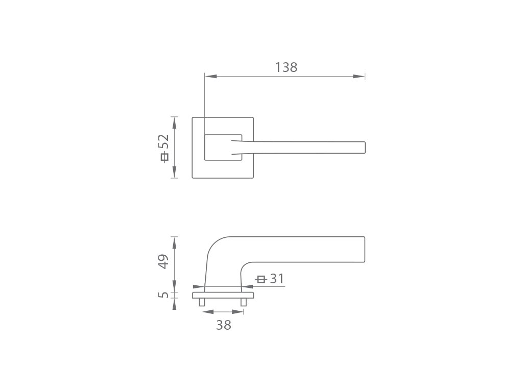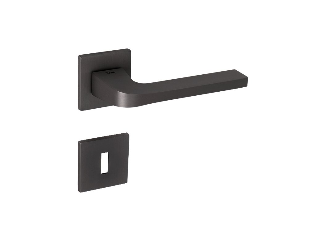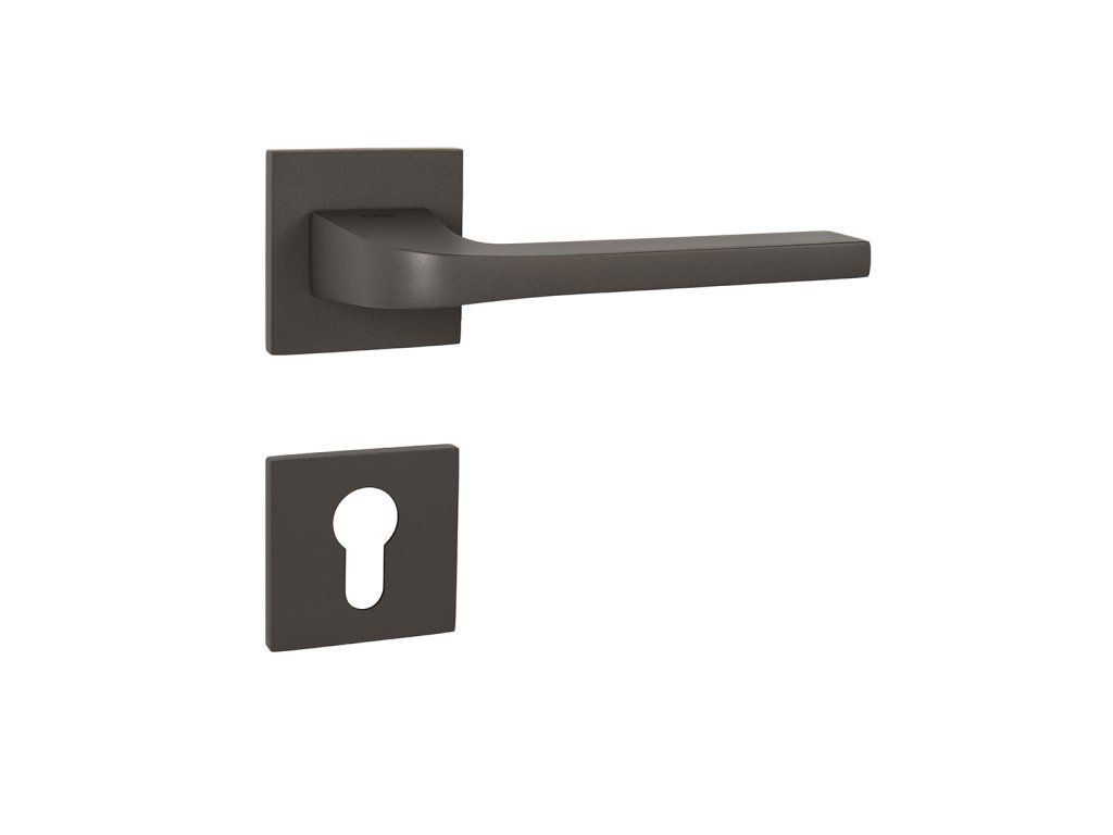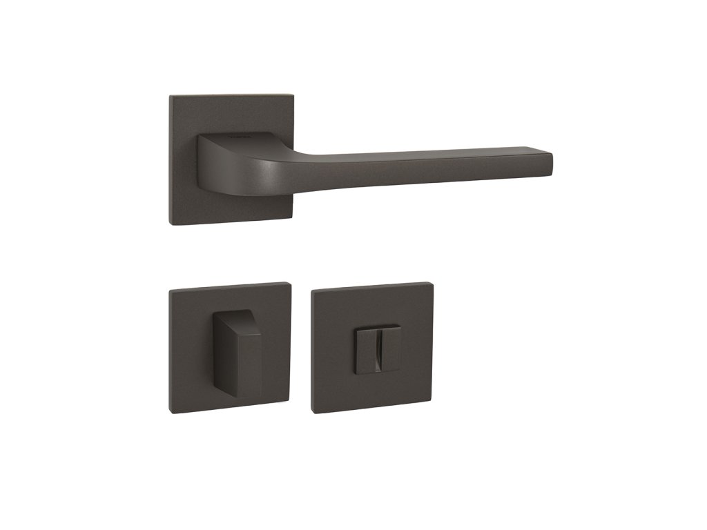 Rozetová kľučka na interiérové dvere s hranatou rozetou je vyrobená z materiálov vysokej kvality- zamak a je povrchovo upravená
