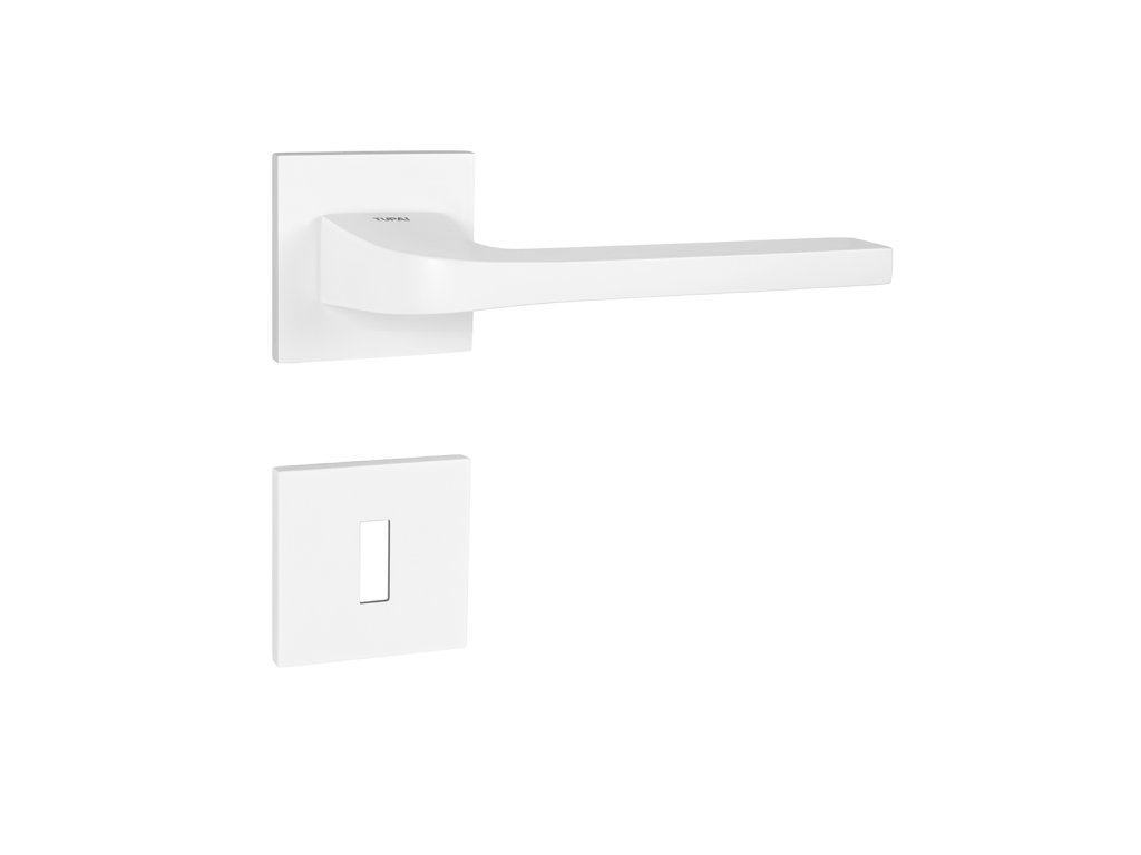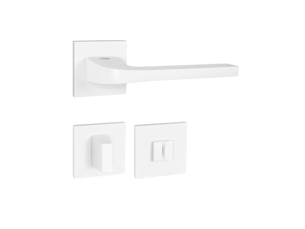 Rozetová kľučka na interiérové dvere s hranatou rozetou je vyrobená z materiálov vysokej kvality- zamak a je povrchovo upravená