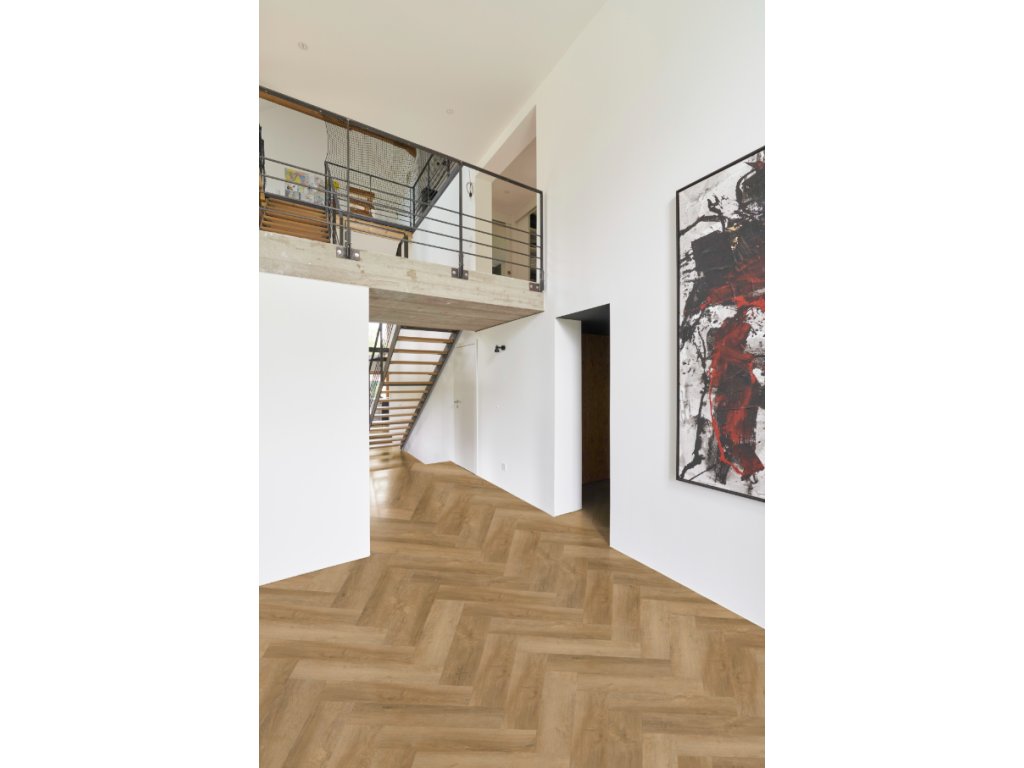 Vďaka drevenému dizajnu a formátu lamiel pre pokládku do vzoru rybej kosti vytvára podlaha výrazný vizuálny efekt, ktorý sa hodí do moderných aj klasických interiérov. Zároveň je nenáročná na údržbu a poskytuje komfort pri každodennom používaní.