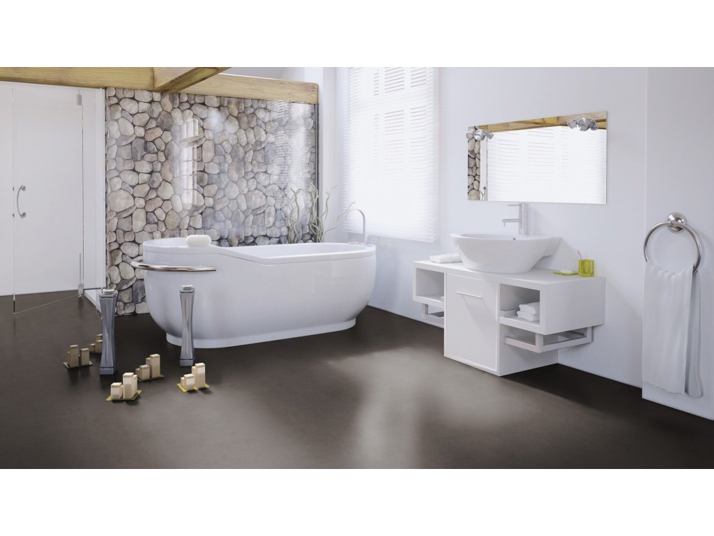 Podlahy z tejto kolekcie sú ekologické a úplne bez PVC. Povrch s elegantnou kamennou štruktúrou a mikro skosenými hranami podčiarkuje luxusný vzhľad. Povrch je hrejivý a šetrný ku kĺbom.