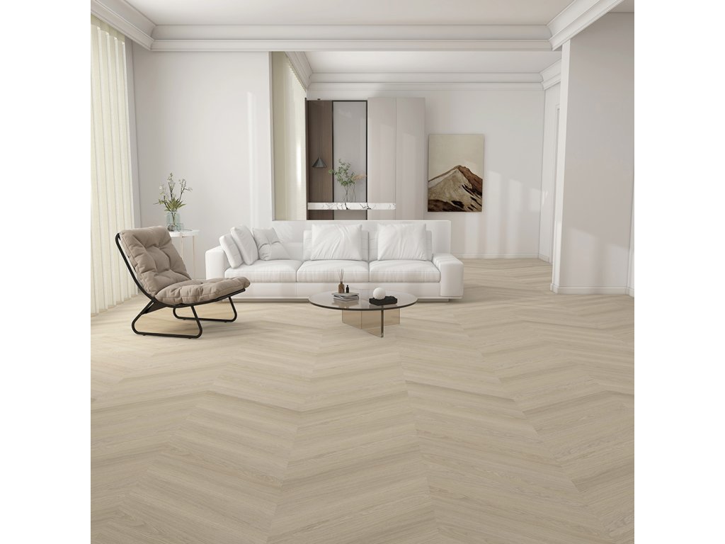 Ide o lepenú vinylovú LVT podlahu, ktorá sa lepí priamo na podklad a vďaka presným rozmerom lamiel umožňuje montáž aj do elegantného vzoru Chevron, čím dodáva interiéru jedinečný charakter.