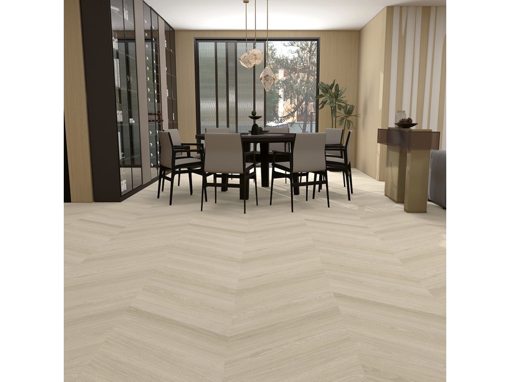 Ide o lepenú vinylovú LVT podlahu, ktorá sa lepí priamo na podklad a vďaka presným rozmerom lamiel umožňuje montáž aj do elegantného vzoru Chevron, čím dodáva interiéru jedinečný charakter.