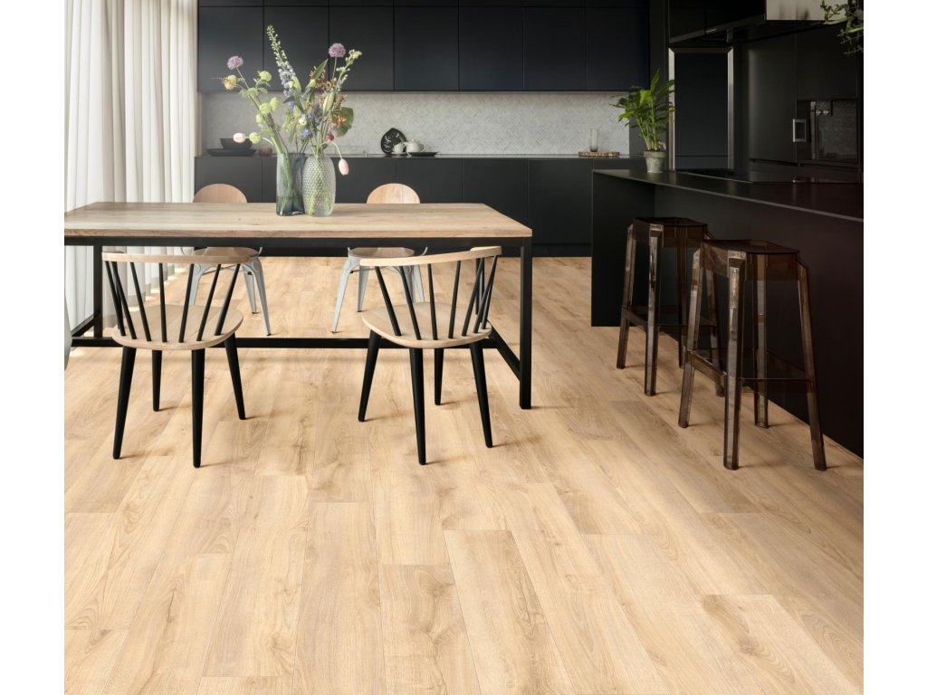 Mäkká, tichá a príjemná podlaha, ktorá vytvorí vo vašom obytnom priestore pocit domova. Hrúbka nášlapnej vrstvy 0,55 mm umožňuje použiť podlahu vo všetkých intenzívne namáhaných bytových a aj nebytových priestoroch. Dodatočná krycia vrstva na povrchu podlahy znižuje riziko vzniku mikroškrabacov a zjednodušuje jej údržbu a čistenie. Pre väčšiu stabilizáciu je stredová vrstva opatrená dvomi vrstvami sklenených vlákien.